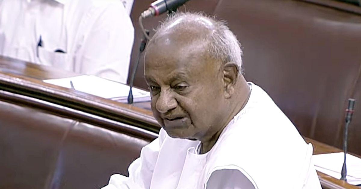 IMAGE: JD-S Rajya Sabha MP H D Deve Gowda. Photograph: Sansad TV/ANI Photo