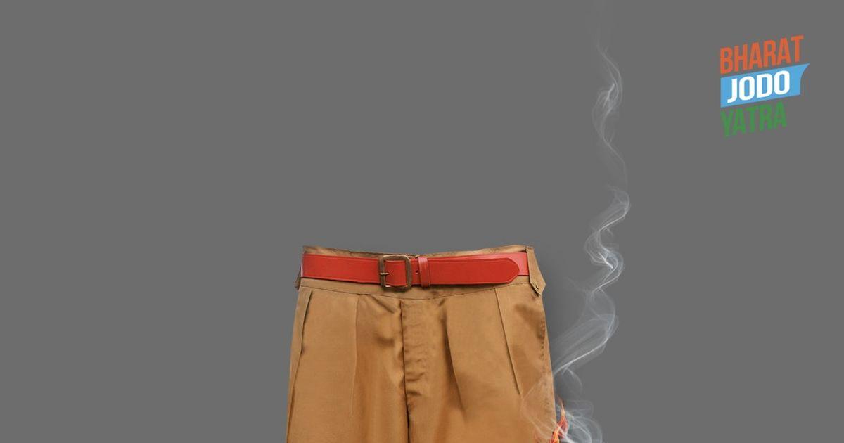 The Congress on Monday tweeted a picture of a khaki shorts -- a part of the Rashtriya Swayamsevak Sangh uniform earlier -- on fire, drawing sharp reaction from the Bharatiya Janata Party which dubbed it as an "instigation for violence".