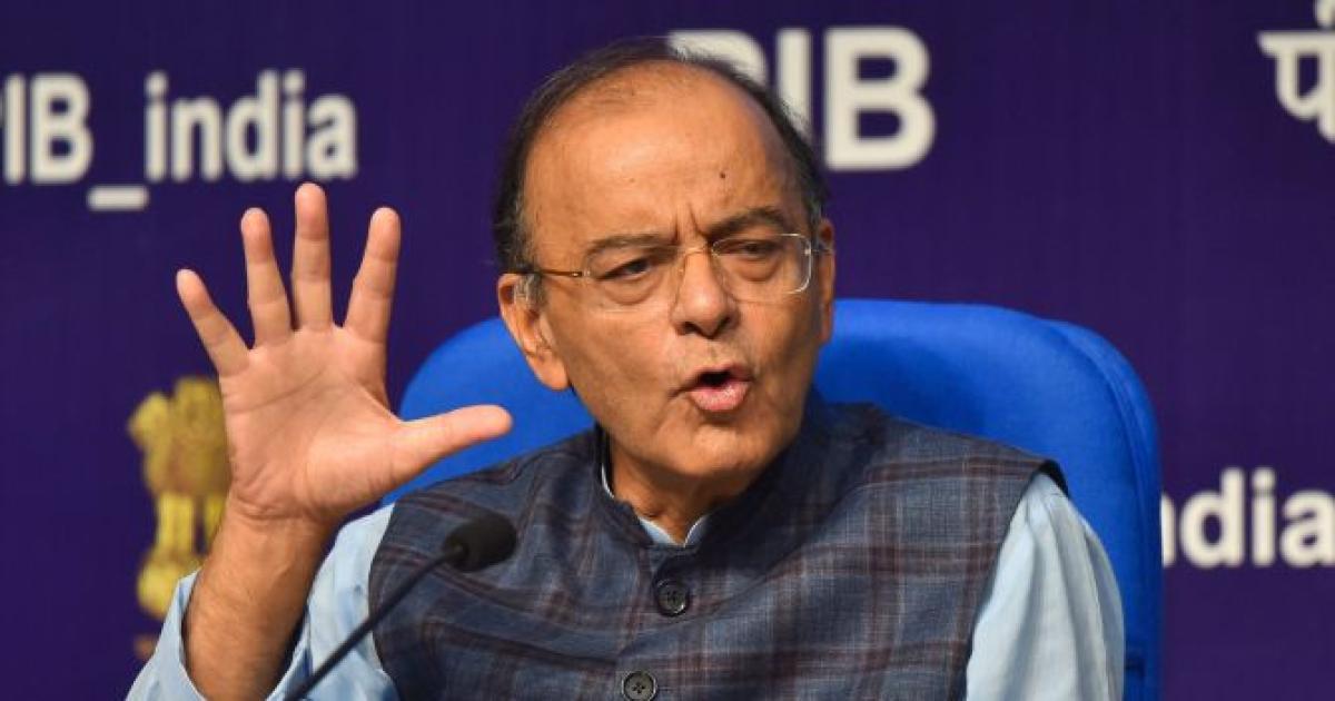 IMAGE: Union Finance Minister Arun Jaitley addresses a press conference. Photograph: Subhav Shukla/PTI Photo