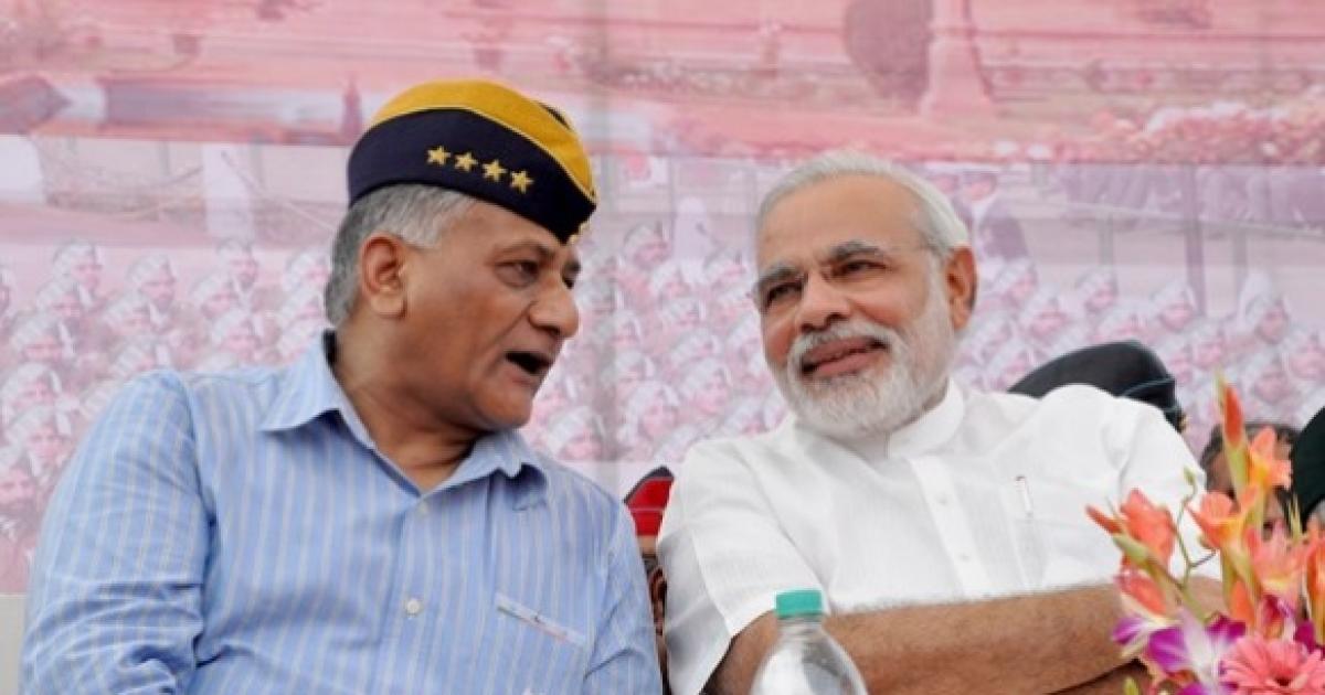Image: Gujarat Chief Minister Narendra Modi with former army chief General V K Singh ' Photograph Courtesy: https://www.narendramodi.in/