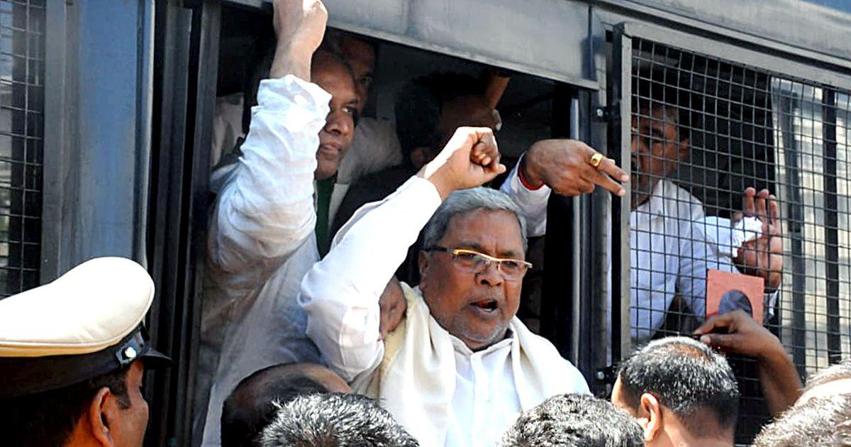 After the public meeting, a large number of Congress workers led by Siddaramaiah, Congress national general secretary Randeep Singh Surjewala, Congress state president D K Shivakumar, former ministers Priyank Kharge and Krishna Byregowda took out the march to lay siege to the Chief Minister's house.