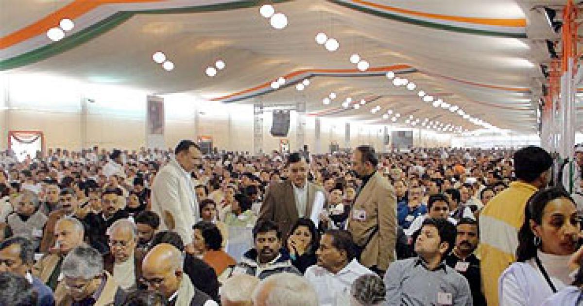 Image: Congress Party memebers at the plenary session being held in Delhi.