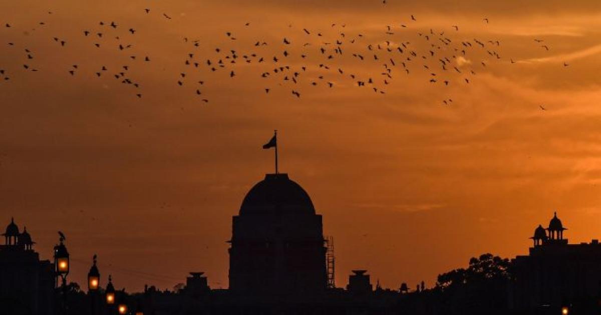 IMAGE: A flock of birds flying over the Raisina hills in New Delh. Photograph: Manvender Vashist/PTI Photo