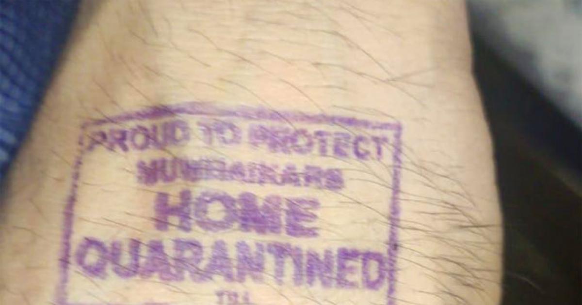 When the train reached Kazipet in Telangana at 9:45 am a co-passenger noticed the quarantine mark -- authorities are putting on suspected coronavirus cases -- on the husband's hand when he was wash his hands.
