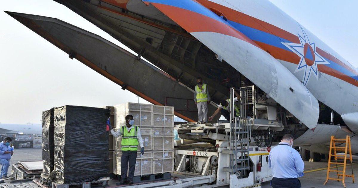Two Russian flights with oxygen concentrators, lung ventilation equipment, bedside monitors, medicines, including Coronavir and other essential pharmaceutical items landed in India to help the country in its fight against the COVID-19 surge.