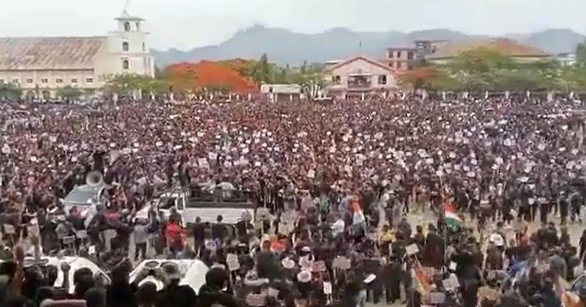 At Churachandpur, the second-largest town in the state, people defied prohibitory orders and gathered at the public ground and took a rally till Tuibong.