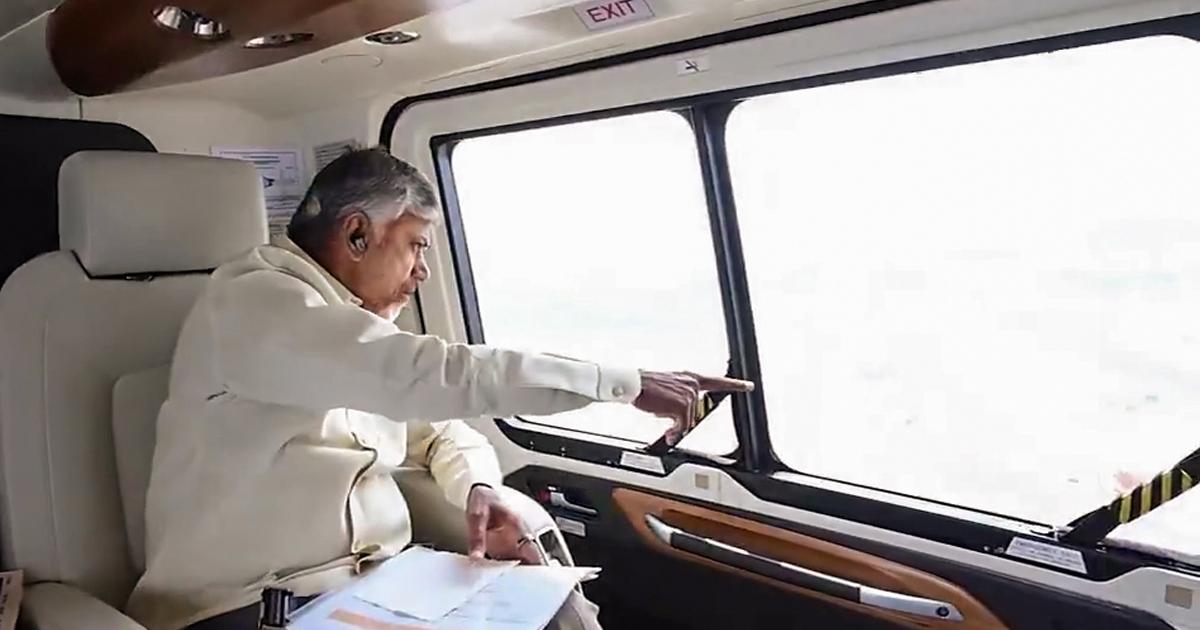 Naidu undertook an aerial survey of the cyclone-affected areas, which included Bapatla, Palnadu, Krishna, Konaseema and Eluru districts.