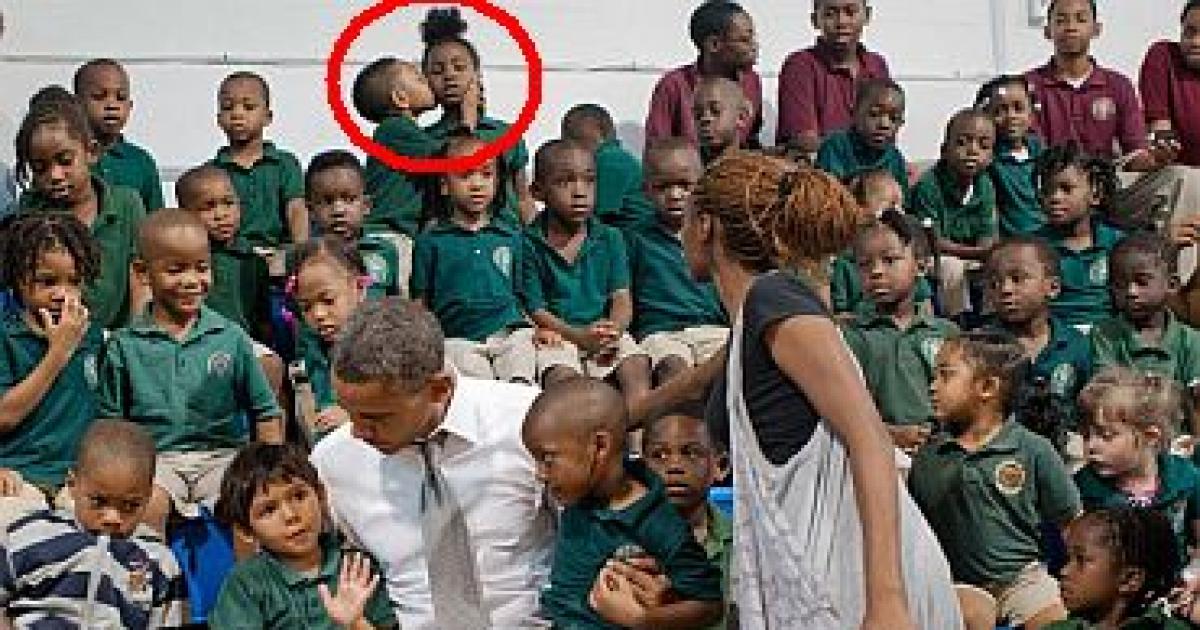 For most students at Daughter of Zion Junior Academy in Florida, Barack Obama was understandably the most interesting thing in the room as he sat down to pose for a surprise group photo, but for a boy in the back row it seemed to be the girl who sat next to him.