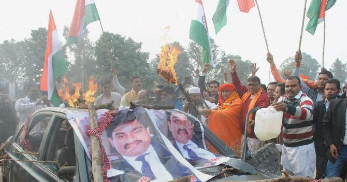 The green-coloured Hyundai Accent sedan was burnt by Swami Chakrapani and Akhil Bhartiya Hindu Mahasabha activists at Green Park farmhouse near Kanavani village culvert in Ghaziabad in Indirapuram at around 2 pm with Dawood's posters pasted on its windscreen.