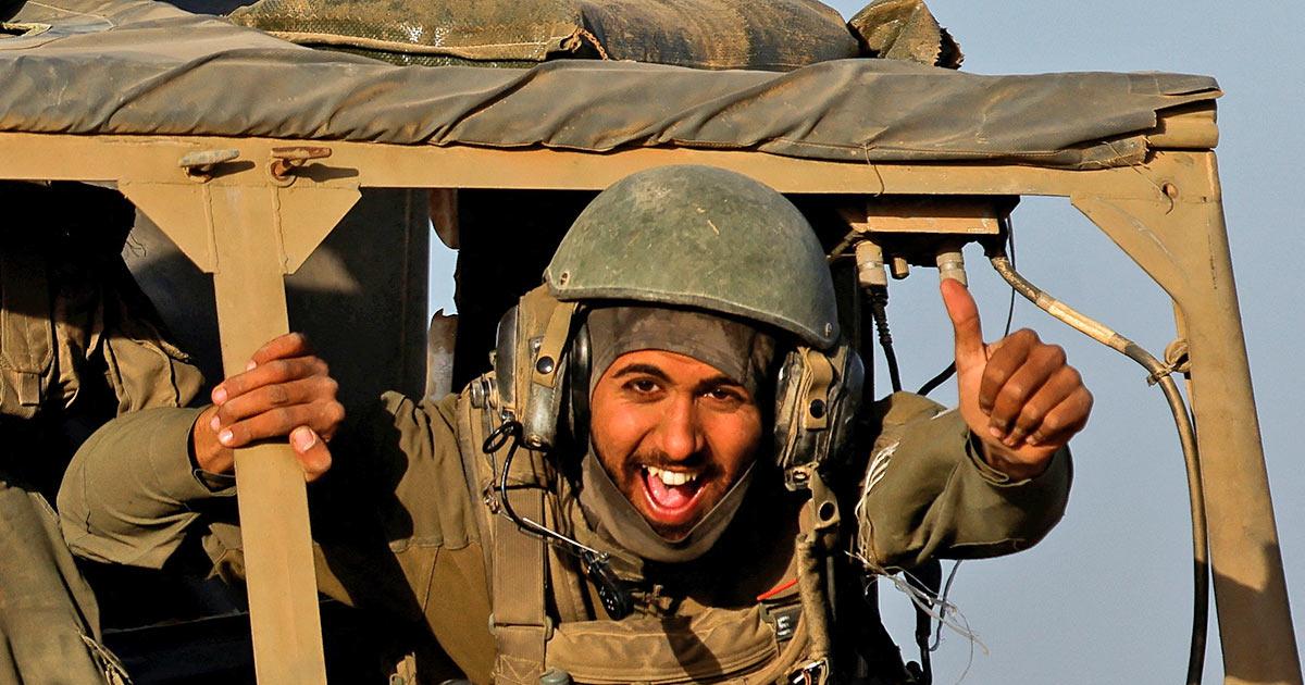 IMAGE: Happy Israeli soldiers on their way home. Photograph: Amir Cohen/Reuters