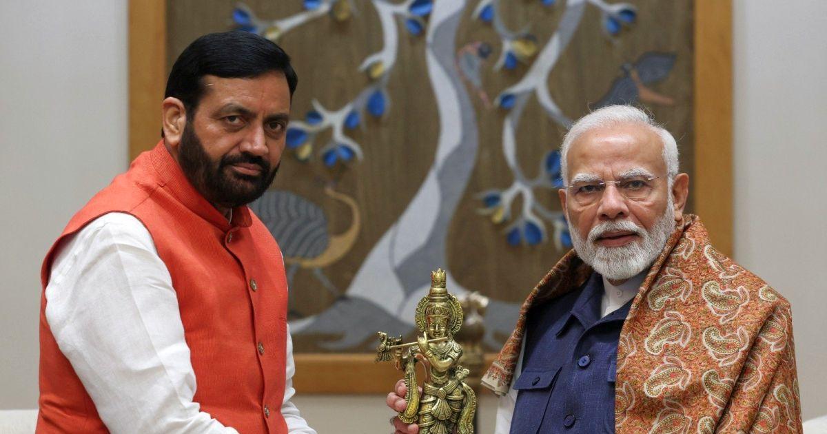 Haryana Chief Minister Nayab Singh Saini met Prime Minister Narendra Modi in New Delhi on Wednesday ahead of his likely swearing-in as the head of the Bharatiya Janata Party government in the state following the party's remarkable win in the assembly polls.