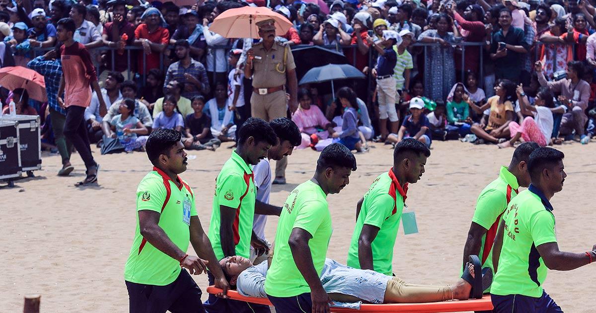 Of the nearly 100 people admitted to the government hospitals close to Marina beach, 7 were undergoing treatment, and 93 people were treated as out-patients. Five persons were brought dead to the hospitals, Subramanian stated.