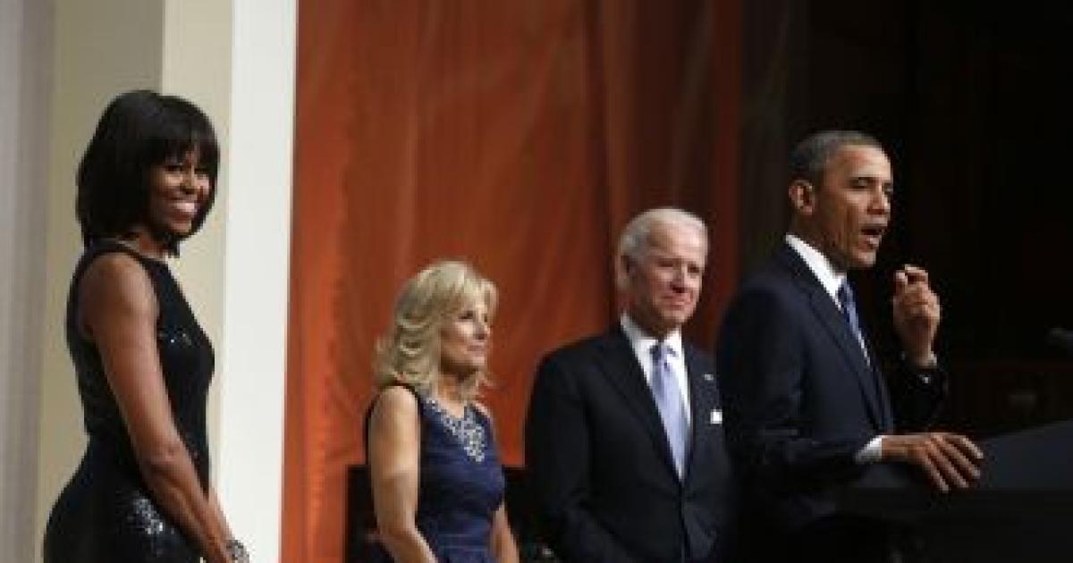 Image: US President Barack Obama, first lady Michelle Obama, Vice President Joseph Biden and Jill Biden attend an inaugural reception in Washington, DC