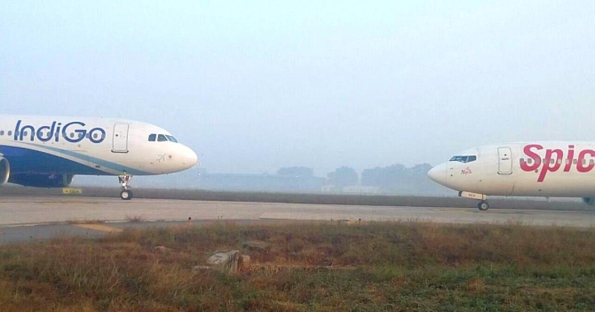 The departing flight of SpiceJet (SG123) was not able to take off from runway 28 due to poor visibility and waiting to return to apron for parking, it said.