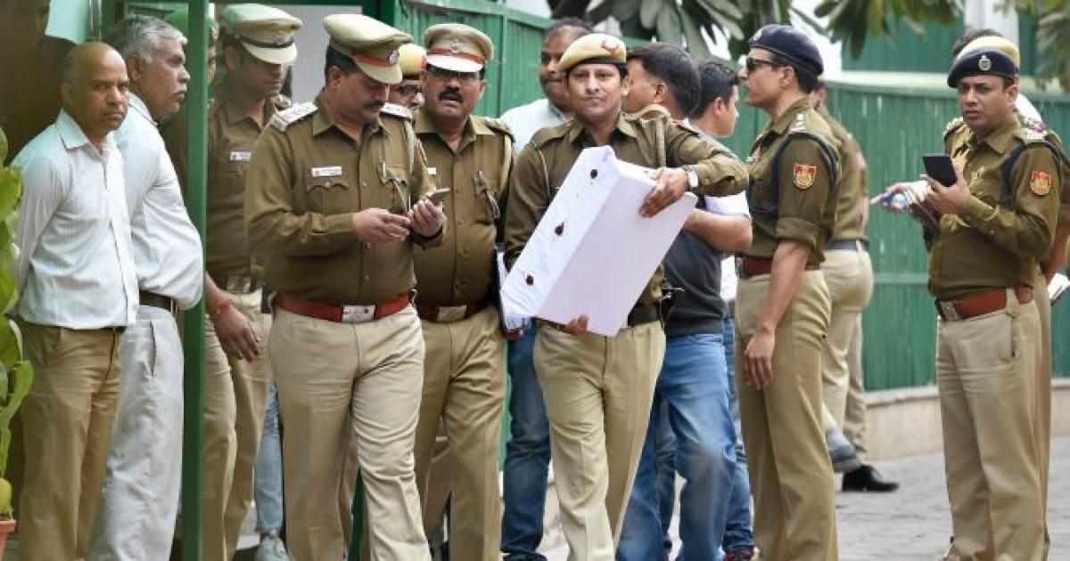 Image: On Friday, the Delhi Police swooped down on the residence of Arvind Kejriwal and seized a hard disk containing CCTV footage in connection with the chief secretary ‘assault’ incident. Photograph: Arun Sharma/PTI Photo