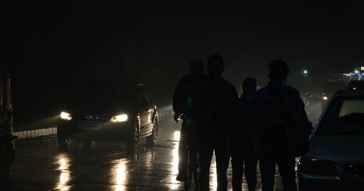 IMAGE: People moving along a road amid a spell of rain in the evening, in New Delhi, December 26, 2021. Photograph: / Rediff.com