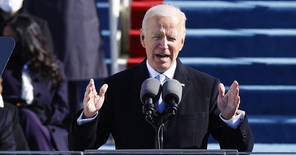 Biden renewed his campaign goals of overcoming the pandemic, bringing racial justice and fighting climate change.