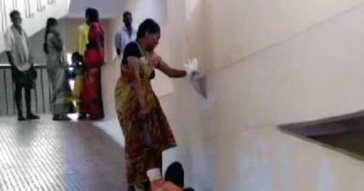 As he began to falter, she started dragging him on the ramp and some passersby caught the scene on their mobile phones and someone eventually posted it on Facebook. It was promptly picked up by television channels.