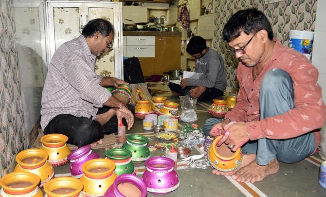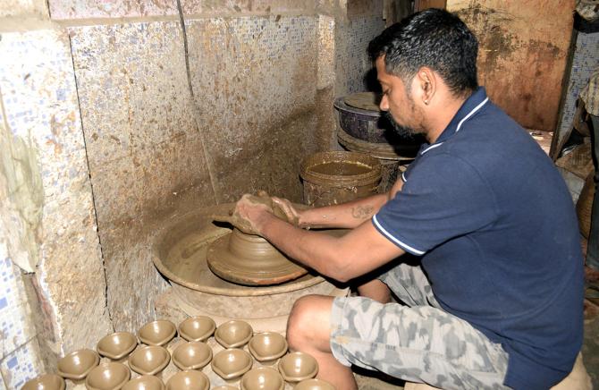 Artisans in Kumbharwada in Mumbai are busy crafting diyas and panatis for the coming Diwali season.