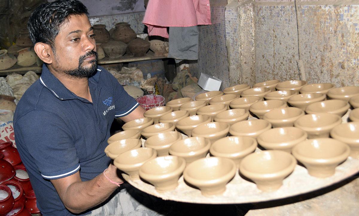 Artisans in Kumbharwada in Mumbai are busy crafting diyas and panatis for the coming Diwali season.