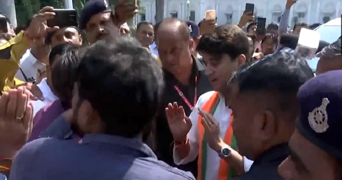 To mollify the protesters, Jyotiraditya Scindia drove to the palace gate and asserted that he stood by them and Goyal.