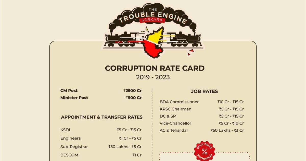 Ahead of the May 10 assembly polls in Karnataka, the Congress released a set of posters and advertisements listing "corruption rates" in the state, between 2019 and 2023, while terming the BJP government a "trouble engine".