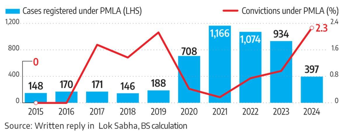 The conviction rate in PMLA cases remains disproportionately low compared to the total number of PMLA cases registered by the ED.