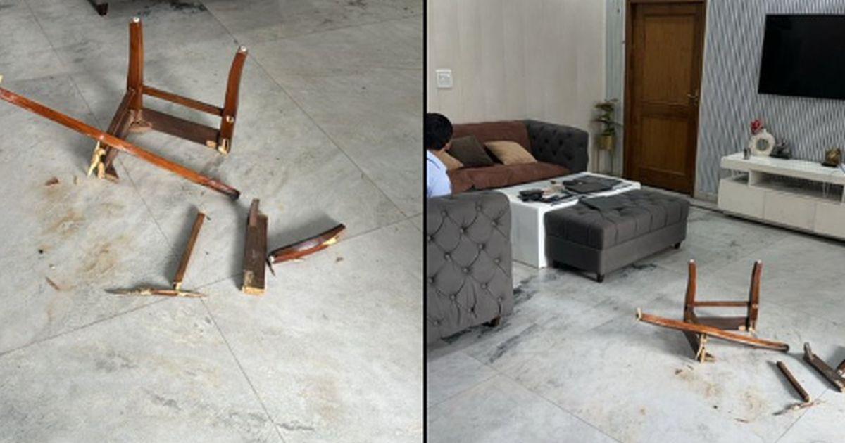 A picture of a broken chair, kept in the farmhouse, was shared by the ED on X.