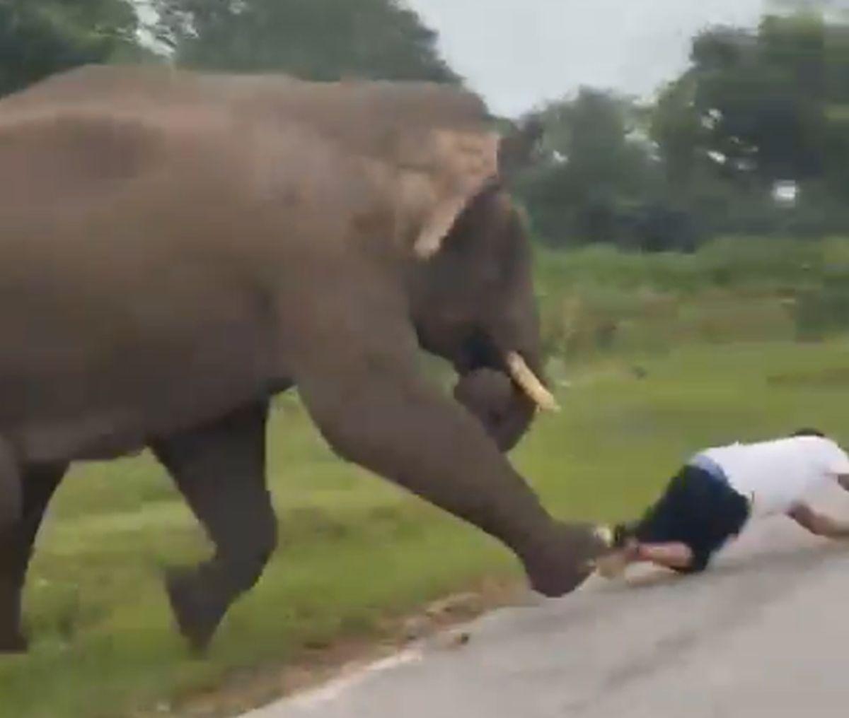 The tourist reportedly tried to photograph a wild elephant that was eating tomatoes. The provoked elephant charged at him and rushed to trample him under its mighty feet.