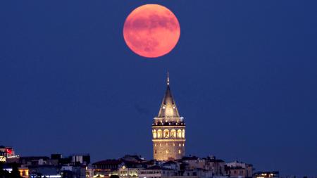 IMAGE: A full moon, known as the Buck Moon, rises over the Galata Tower in Istanbul, Turkey, July 10, 2025. Photograph: Dilara Senkaya/Reuters