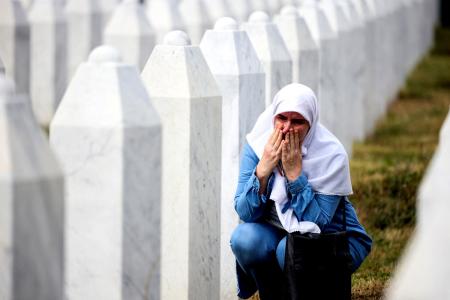 IMAGE: A Bosnian woman prays near the tombstone of a relative at the Srebrenica-Potocari Memorial Center in Potocari, near Srebrenica, Bosnia and Herzegovina, July 10, 2025. Photograph: Amel Emric/Reuters