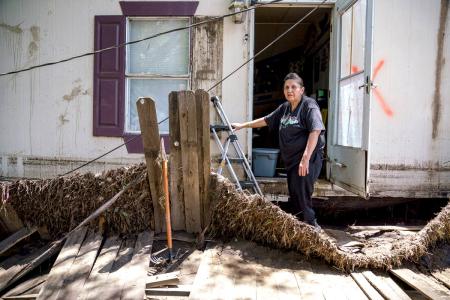 IMAGE: Darleen Apachito, 63, stands in front of her home, which was damaged by deadly flash flooding, at the Gavilan Canyon Trailer Park in Ruidoso, New Mexico, USA, July 10, 2025. Photograph: Paul Ratje/Reuters