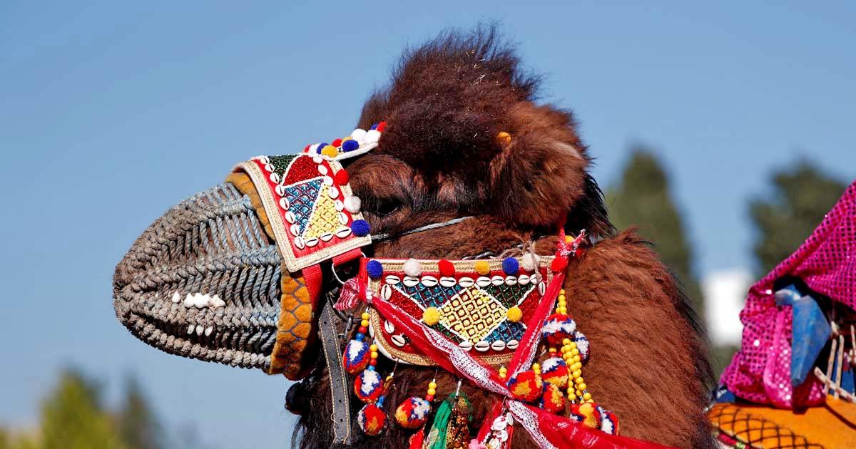 IMAGE: Wrestling camel Ozarslan Bey, adorned with colourful ornaments, takes part in the Camel Beauty Contest ahead of the camel wrestling festival.