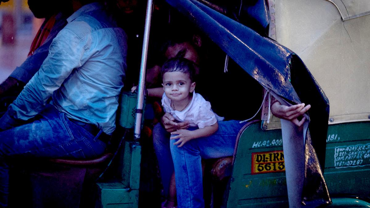 IMAGE: A child looks out from an autorickshaw as it rains in New Delhi. Photograph: Adnan Abidi/Reuters
