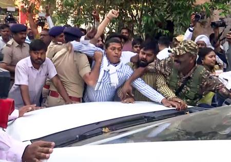 ED officials said their vehicles were stopped by Congress supporters who had gathered outside the residence of the Baghel's and a stone hit the windshield of a car while the teams were leaving.