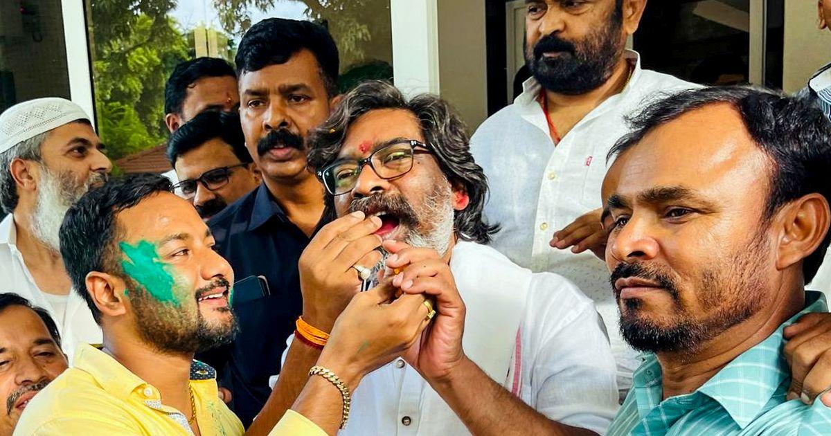 JMM and Congress workers in the state were seen distributing sweets among themselves.