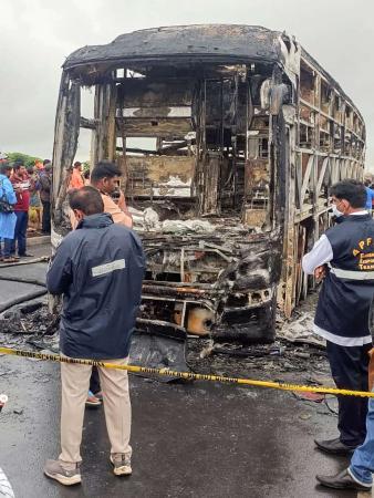 "The fire erupted around 2:30-3:00 am. Initially, passengers thought of a tyre burst, but panic spread as flames engulfed the front part, forcing desperate escape attempts," N Ramesh told reporters.