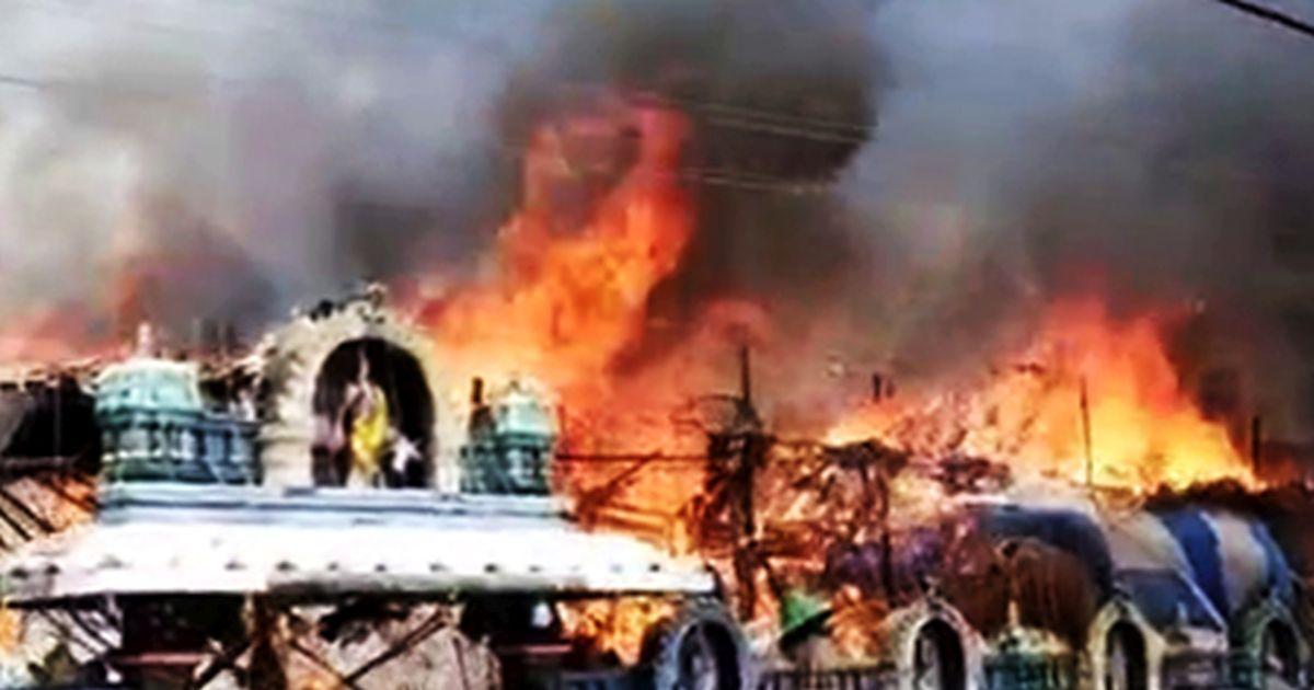 The fire erupted at noon after the completion of puja (rituals) and when the procession was already on its way into the village.