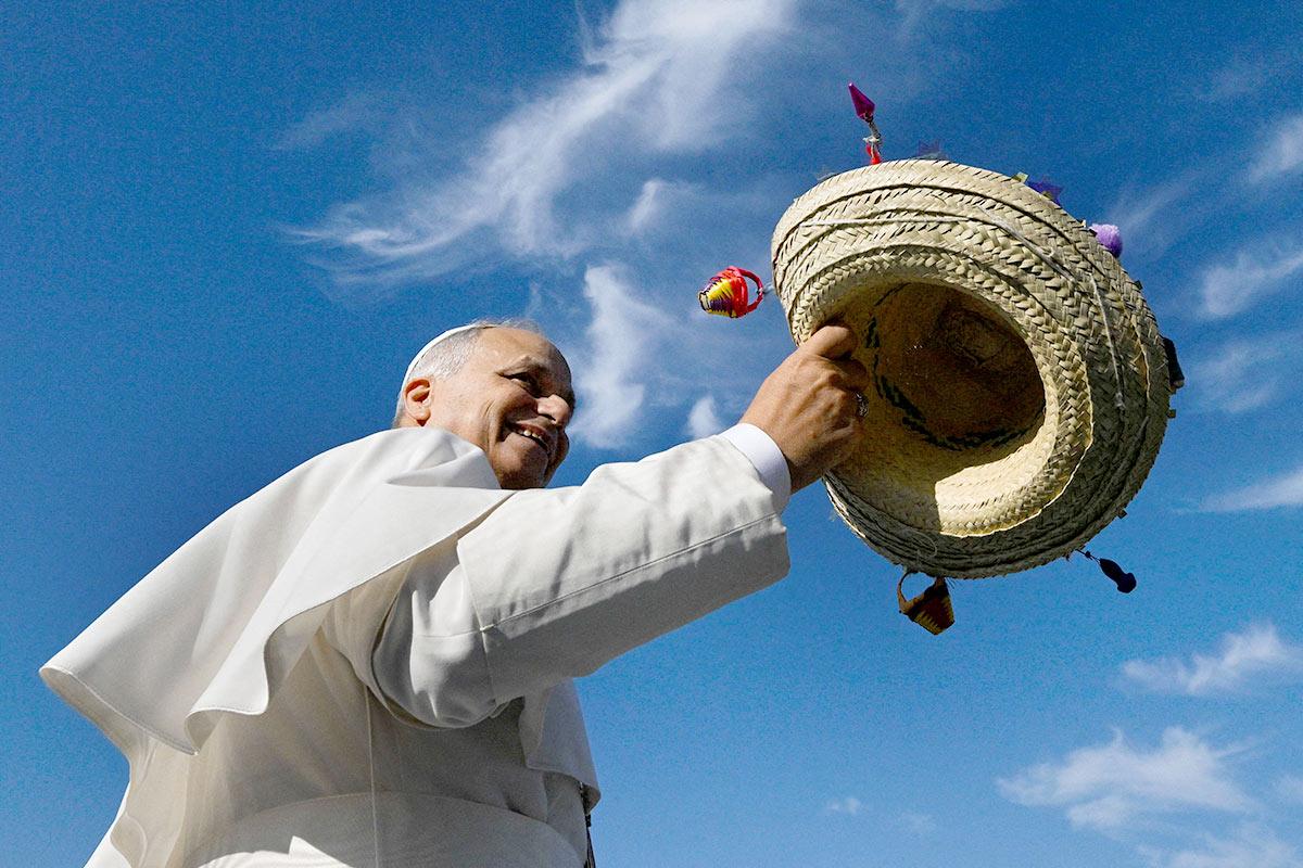 IMAGE: Pope Leo XIV holds a hat during the Mass for Jubilee of Youth in Tor Vergata in Rome. Photograph: Vatican Media/Handout/Reuters