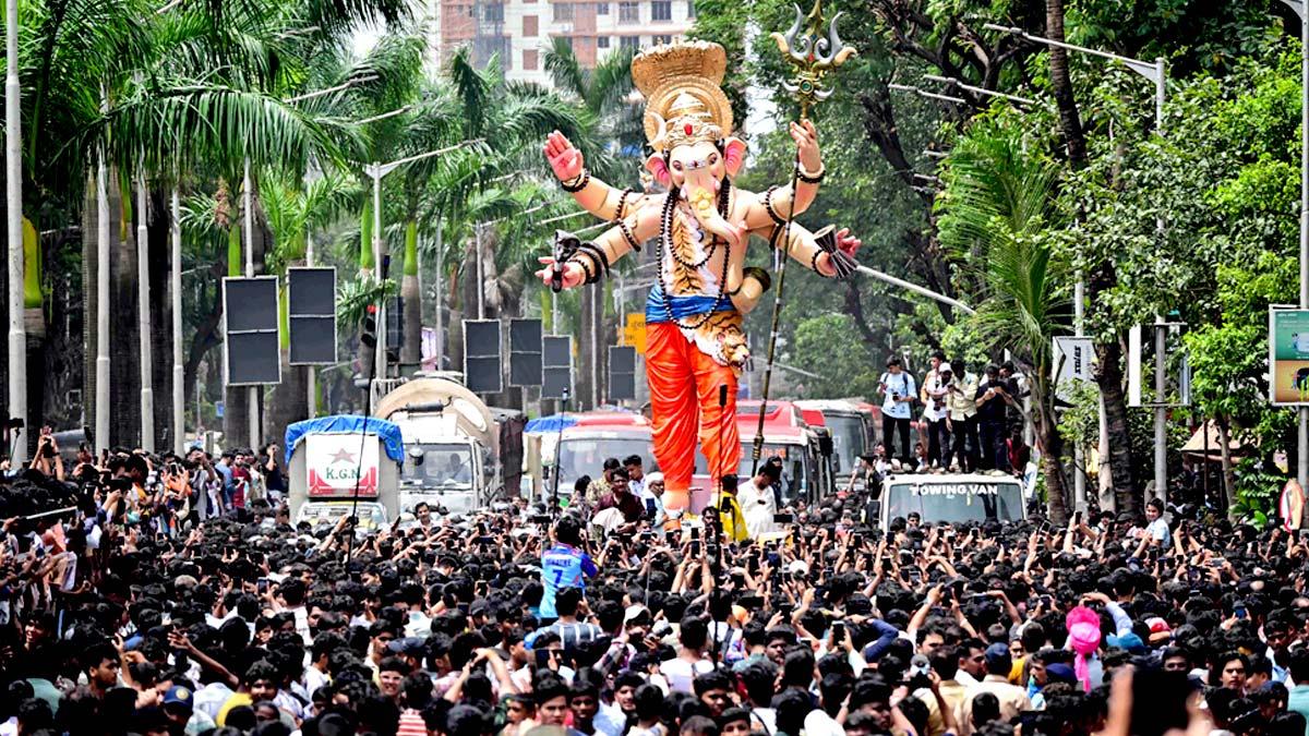 IMAGE: Lord Ganesha being taken to the Kalachowki Cha MahaGanpati pandal in Mumbai ahead of Ganesh Chaturthi. Photograph: ANI Photo