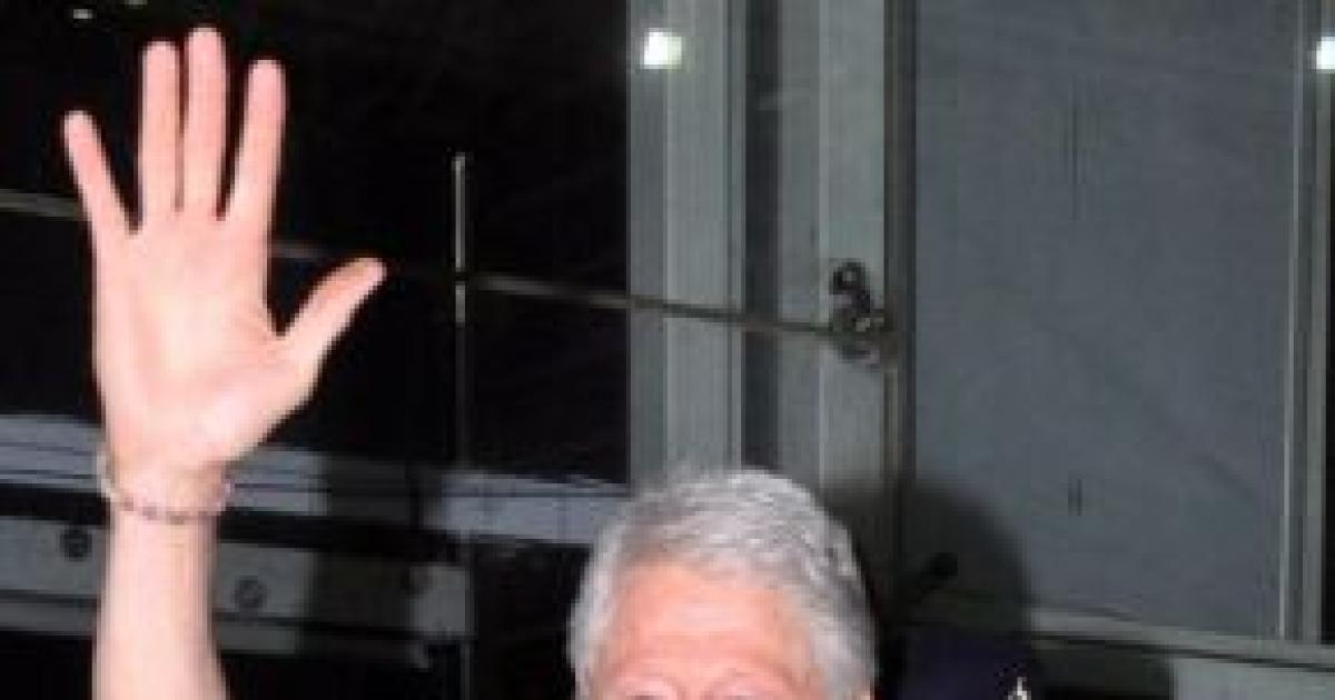 Image: Former US President Bill Clinton waves upon his arrival at Jaipur airport on Monday night. Photograph: PTI photo