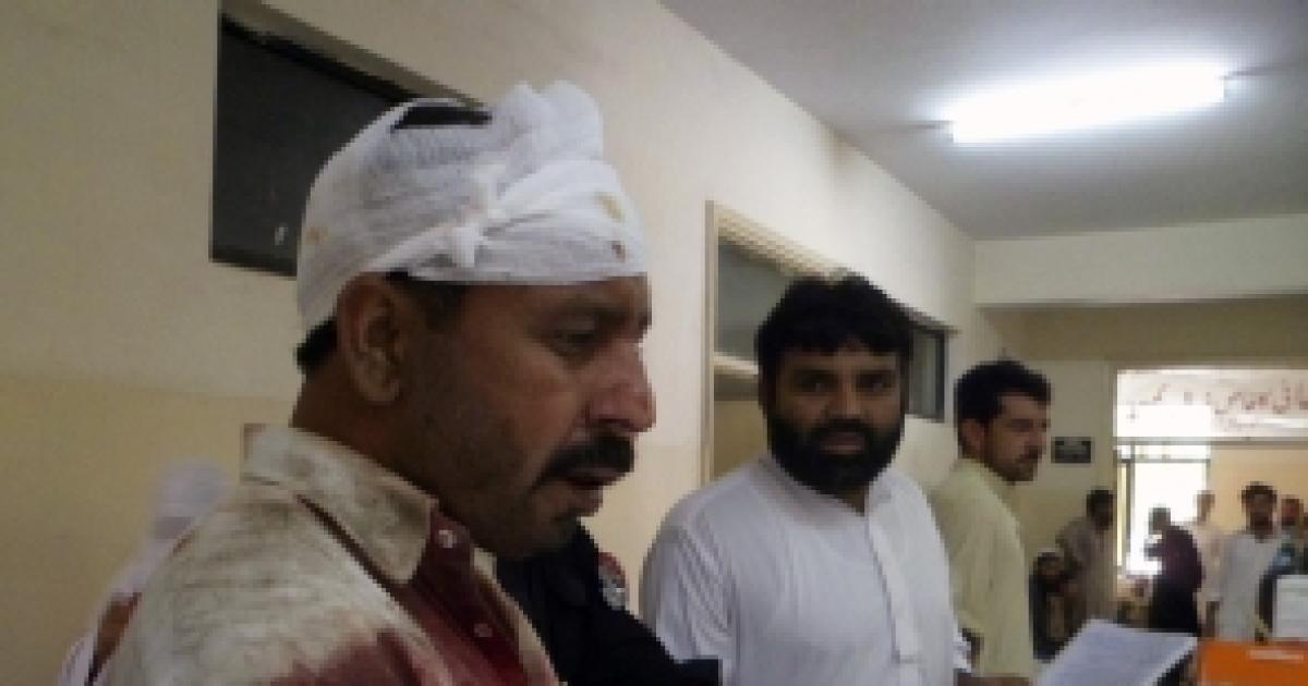 Image: A man, who was injured in a blast, stands at a hospital in Parachinar