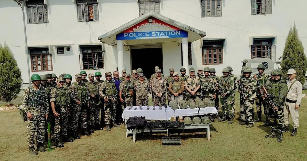 These included one bolt-action 303 rifle with magazine, 10 INSAS LMG magazines, one INSAS rifle magazine, 13 bulletproof helmets, and six bulletproof jackets.