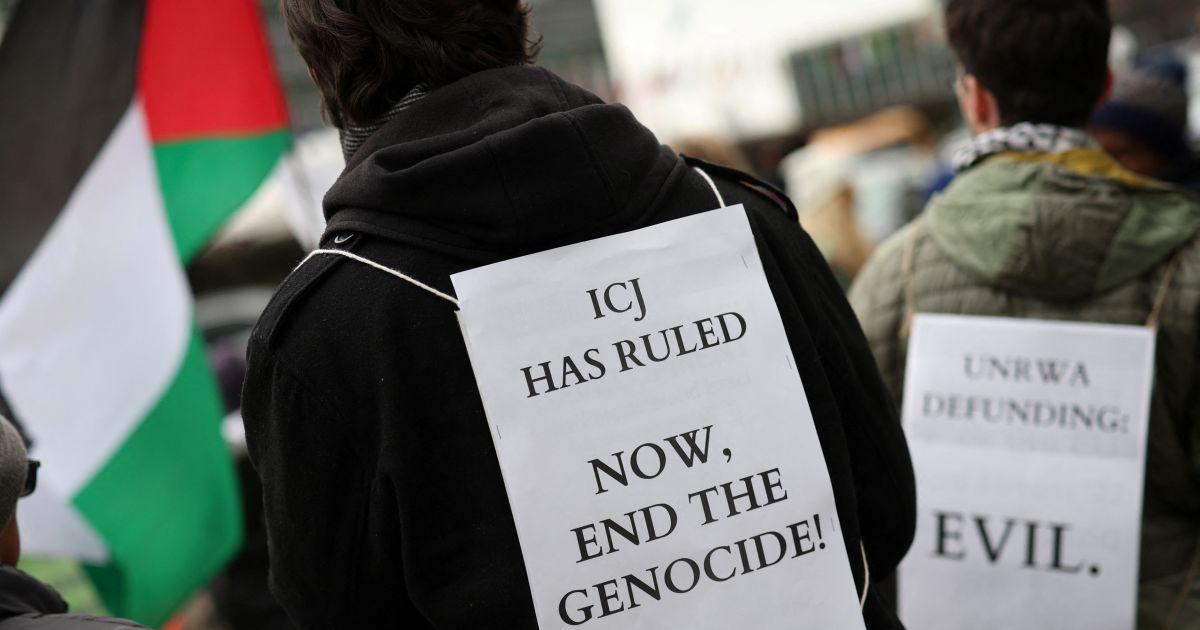 IMAGE: Protests outside the UN headquarters in New York City, on January 31, 2024. The image is used only for representation. Photograph: Mike Segar/Reuters