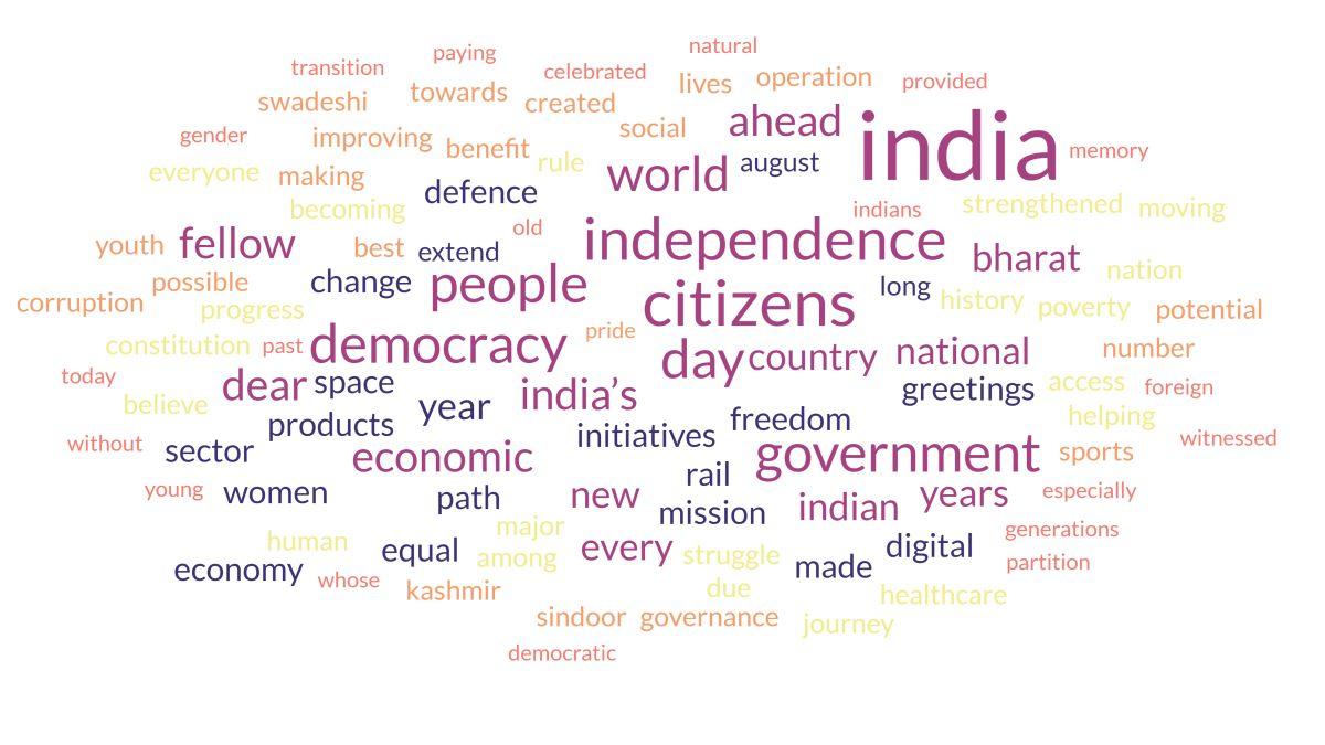 Keeping these principles foremost in mind, we started a new journey in 1947. After the long years of foreign rule, India was in utter poverty at the time of Independence. But in the 78 years since then, we have made extraordinary progress in all fields. India is well on the way to becoming a self-reliant nation and is moving ahead with great confidence.