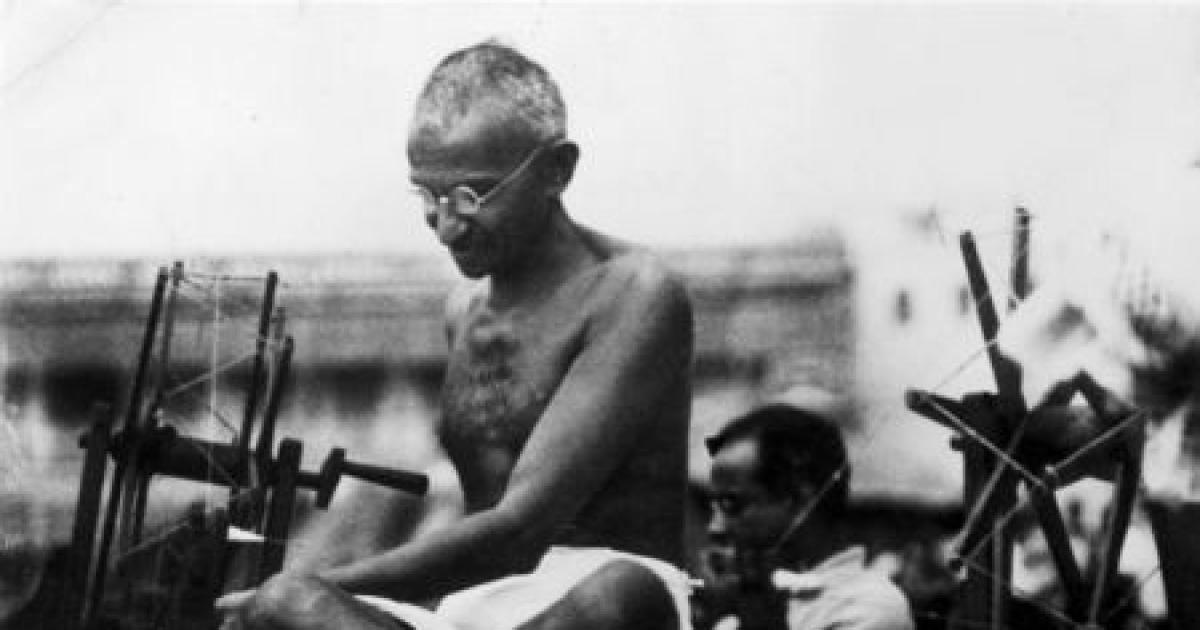 Image: Mahatma Gandhi at a spinning wheel during a 'charkha' demonstration in Mirzapur, Uttar Pradesh in June, 1925.