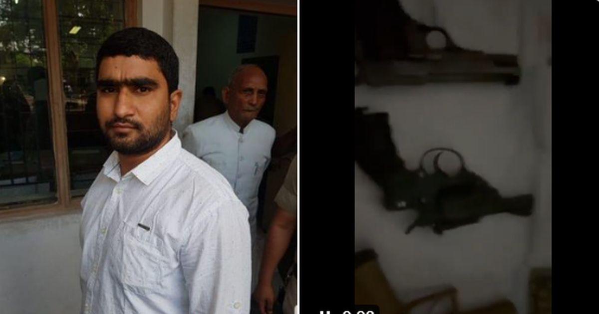 A pistol, a revolver, a country-made pistol, ammunition and a car without number plate have been recovered from him.