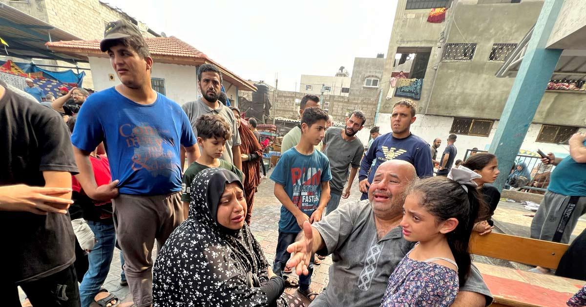 IMAGE: Palestinians at a UN-run school sheltering displaced people, following an Israeli strike in Jabalia in the northern Gaza strip. Photograph: Fadi Whadi/Reuters