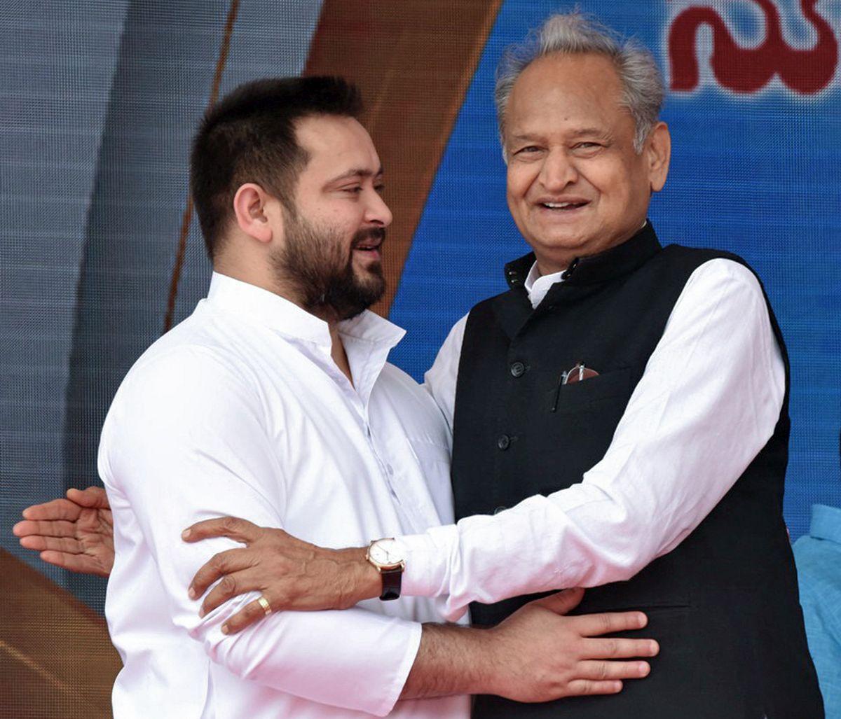 Senior Congress leader Ashok Gehlot, apparently under instructions from the party's top leadership, flew down to hold talks with RJD president Lalu Prasad and his son and heir apparent Tejashwi Yadav.