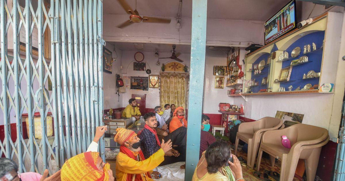 Some jewellery shops in the famous Shringaar Haat area turned into places for community television spots as passers-by and even some security personnel and mediapersons joined shopkeepers to watch the live telecast of 'bhoomi poojan' by Prime Minister Narendra Modi for the temple and his speech.